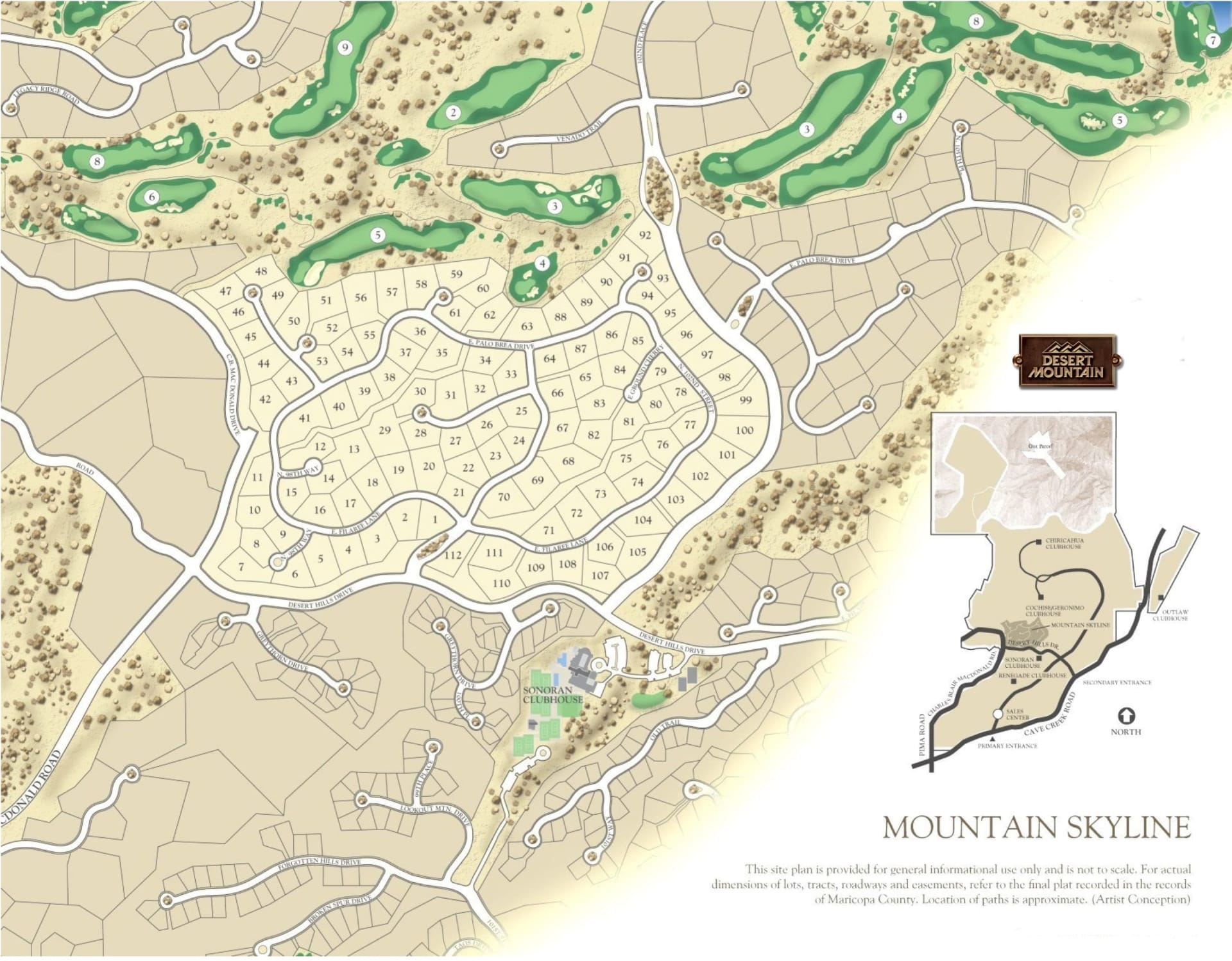 Mountain Skyline is a favorite community of Desert Mountain, situated near the core of the community, while also conveniently located along the front nine holes of the classic Geronimo Golf Course. And, multiple clubhouses are within a short walk or drive from homes in the area, including the recently-renovated Sonoran Clubhouse.