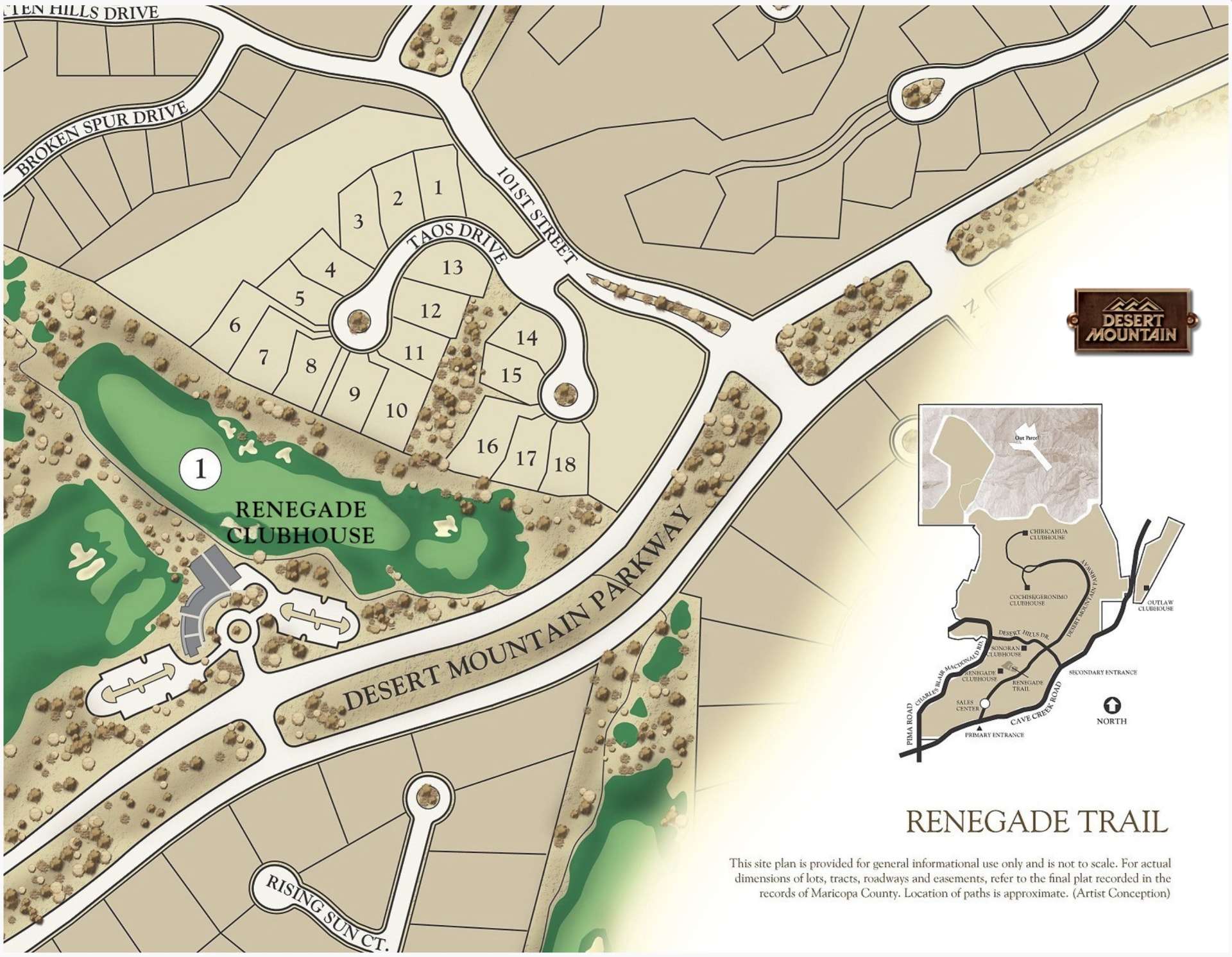 Renegade Trail is situated just above the Renegade Golf Course and Jim Flick Performance Center. Additionally, the Sonoran and Renegade Clubhouses are just steps away, so member-residents can enjoy a game of tennis or exercise at the fitness center with ease.